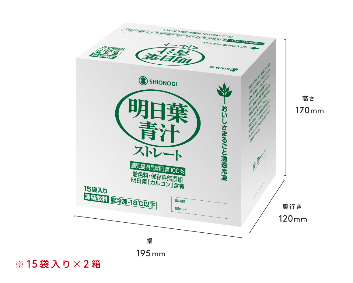 搾りたての明日葉青汁を、マイナス35℃で急速冷凍。着色料、保存料は一切使用しておらず、フレッシュでみずみずしいおいしさをご自宅でお楽しみいただけます。