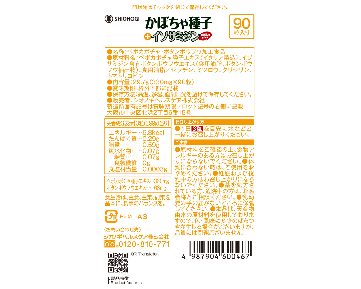 ペポカボチャ種子エキス:360mg、ボタンボウフウエキス(イソサミジンエキス):63mg