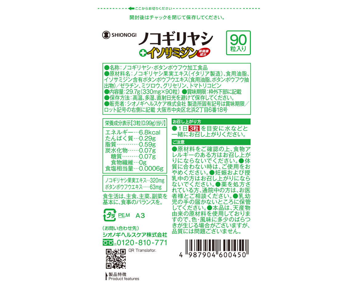 ノコギリヤシ果実エキス:320mg、ボタンボウフウエキス(イソサミジンエキス):63mg