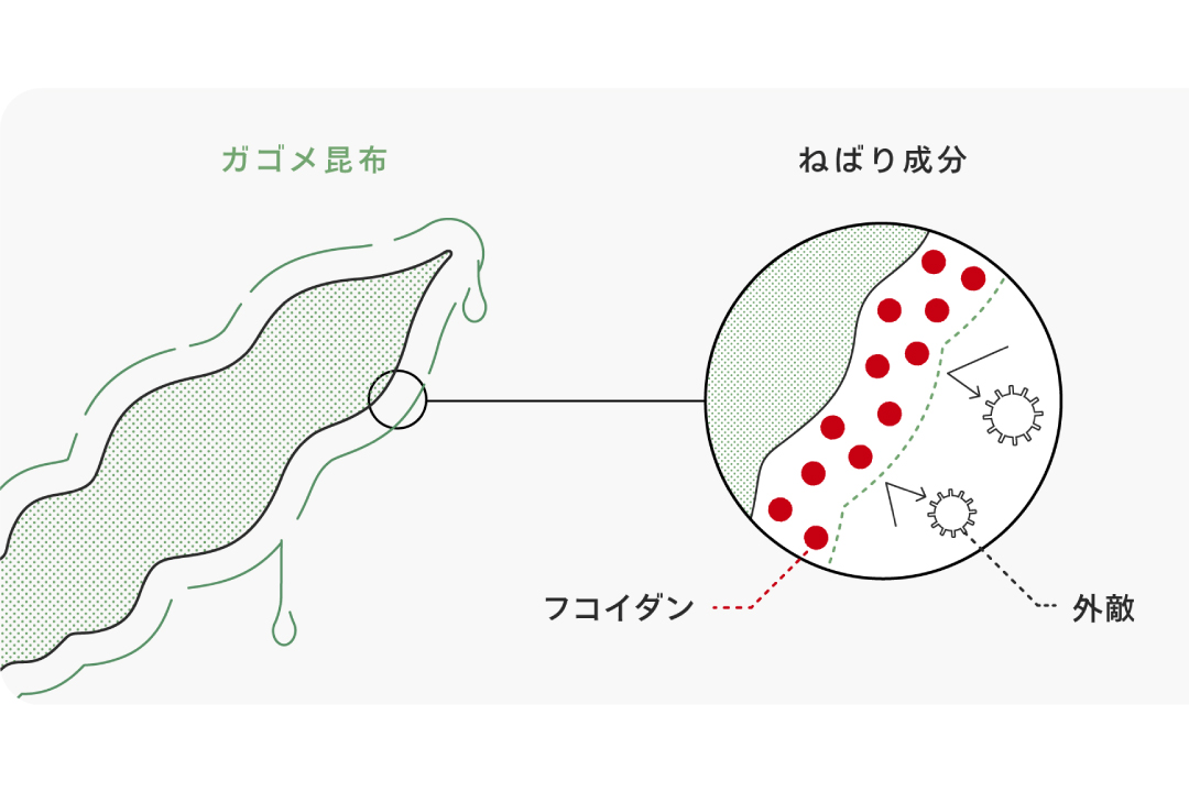 昆布のネバリに含まれる健康成分。ハリ・ツヤをサポートし、若々しさを育む力が秘められています。