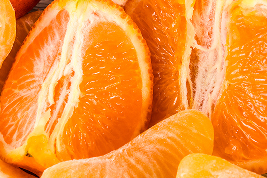 温州みかんをはじめとする柑橘類の皮に含まれるフラボノイドの一種ヘスペリジン。特に「中果皮」と呼ばれる白いスジに多く存在しています。ヘスペリジンには血流を維持して、体温を保つ機能が報告されていますが、そのままでは体内に吸収されにくい成分です。そこで、シオノギヘルスケアではグルコースを付加し、体内への吸収率を向上させた「モノグルコシルヘスペリジン」を配合しています。