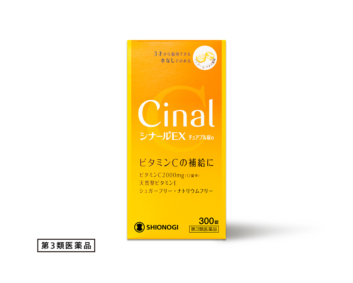 『シナールEXチュアブル錠e』は、かんだり、口中で溶かして食べるチュアブル錠です。甘味と酸味のバランスのとれた、マンゴー&バナナ風味。