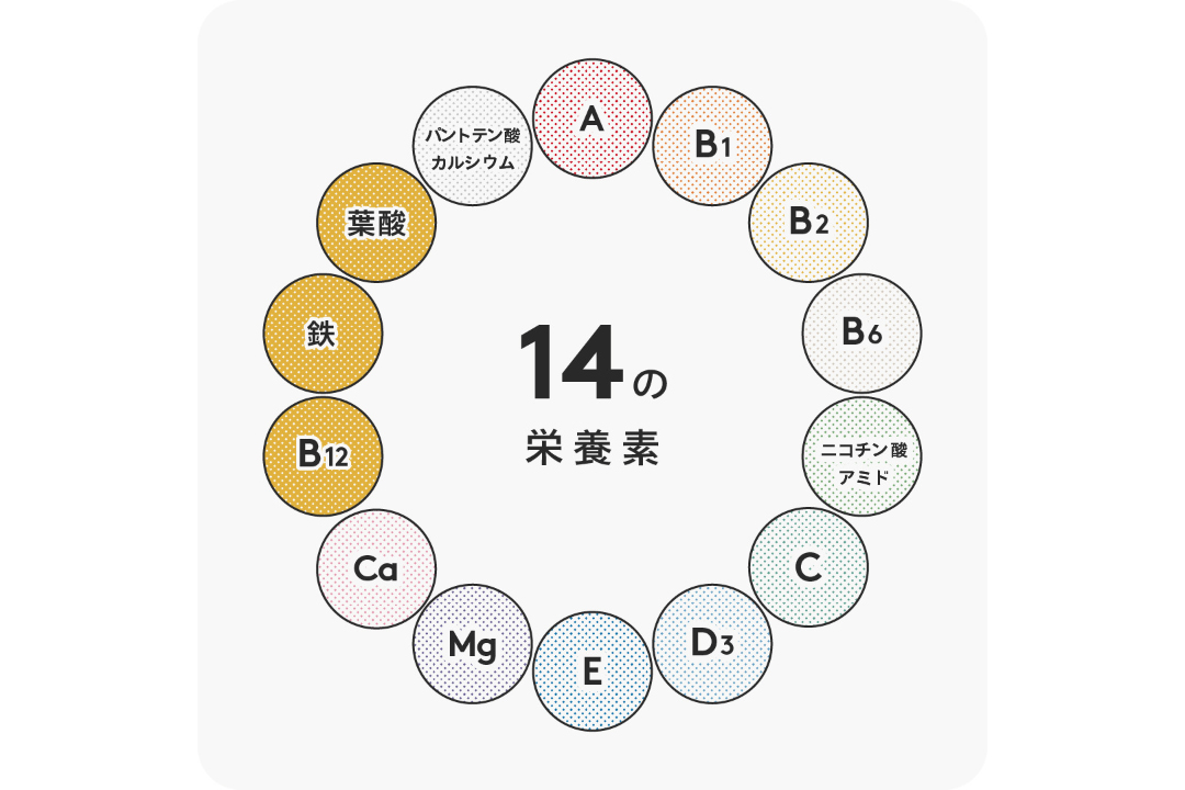 ビタミンの中には、配合後に変質してしまう不安定な成分もあります。医薬品の厳しい基準に従い、3年間(未開封時)有効成分の成分量がきちんと保たれています。