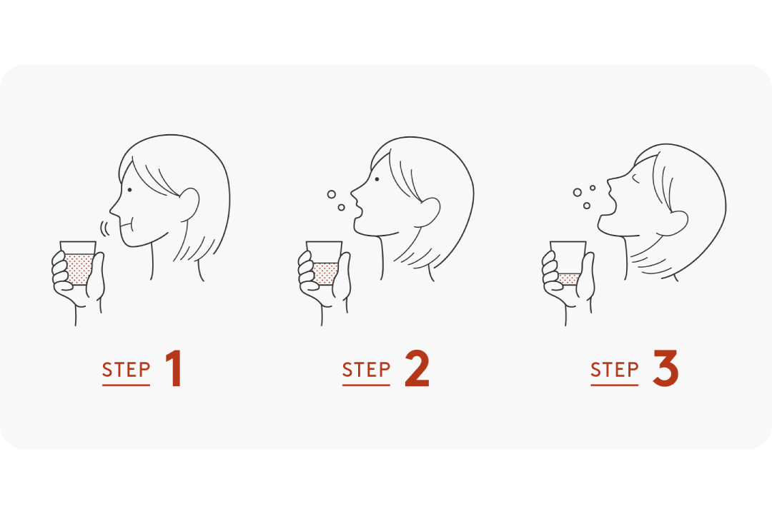 ①ひと口目は強めに「くちゅくちゅ」うがいをし、吐き出します。