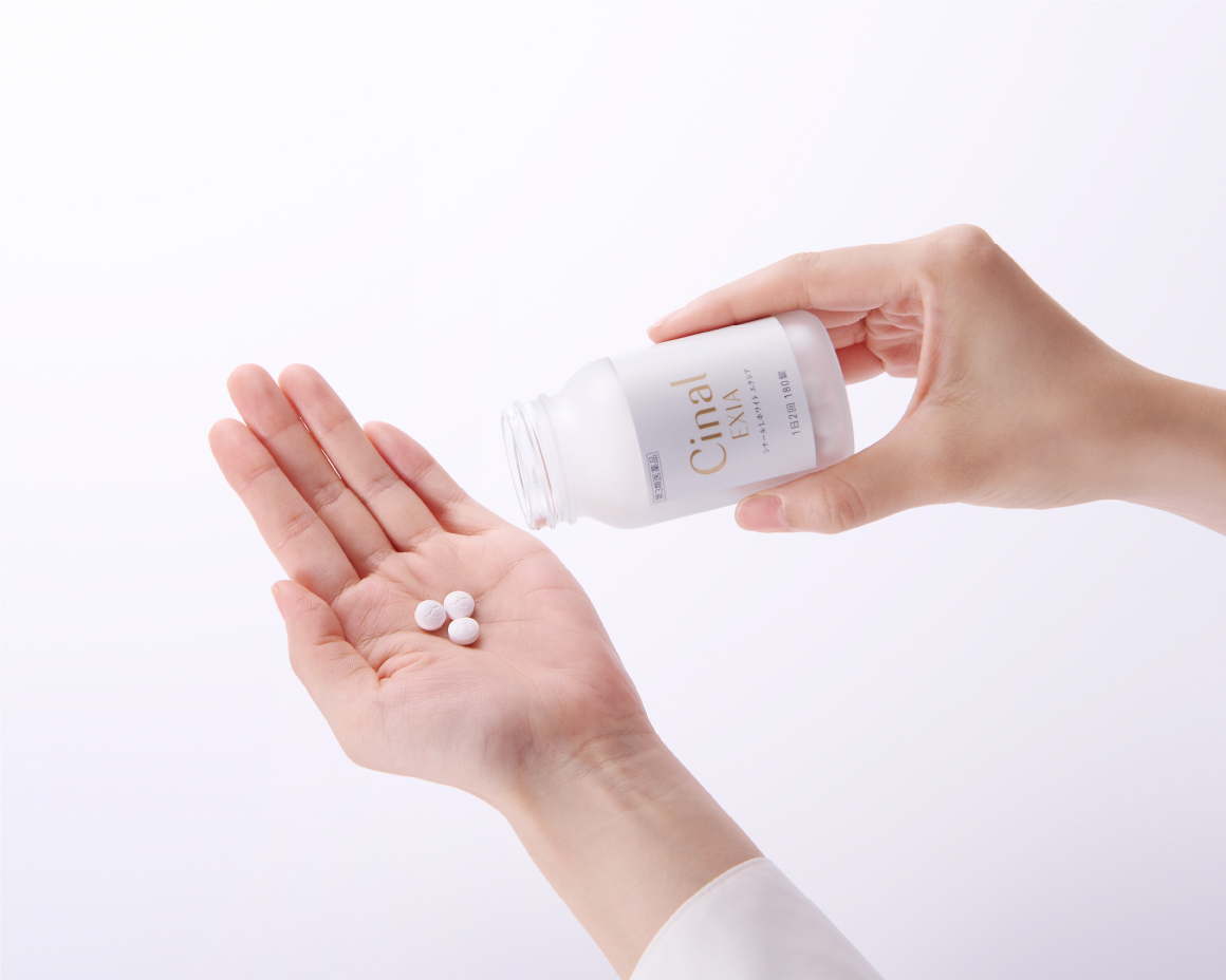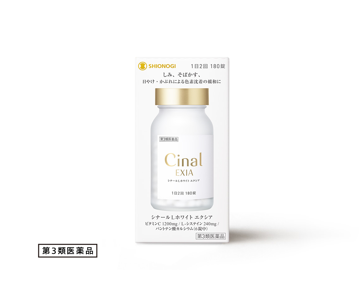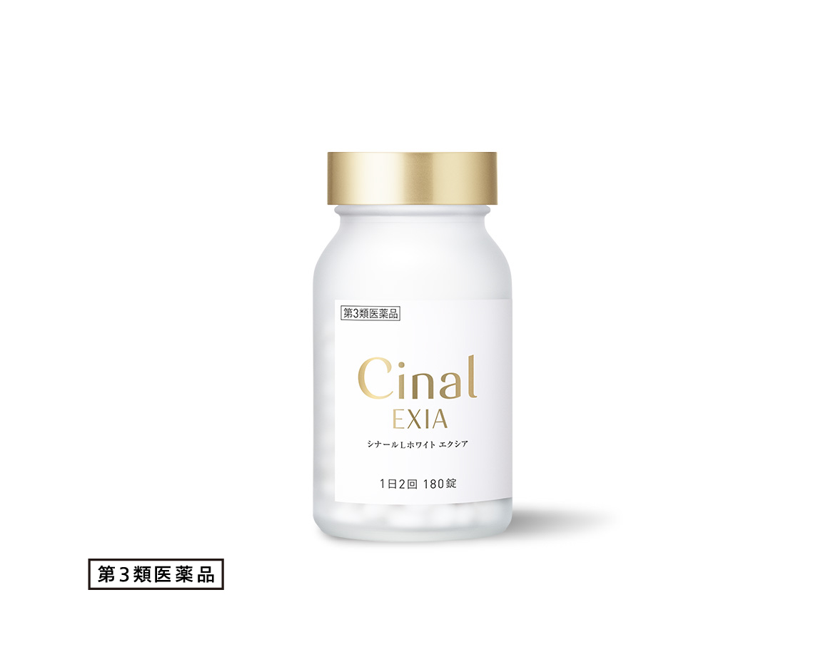 「シナールLホワイト エクシア」は、シミ対策成分シナール史上最大量配合と充実の肌活性化成分で、身体の内側から表皮の奥深くにあるメラノサイトにアプローチ。しみ、そばかす、日焼けなどによる色素沈着を緩和し、できてしまったシミも薄くします。