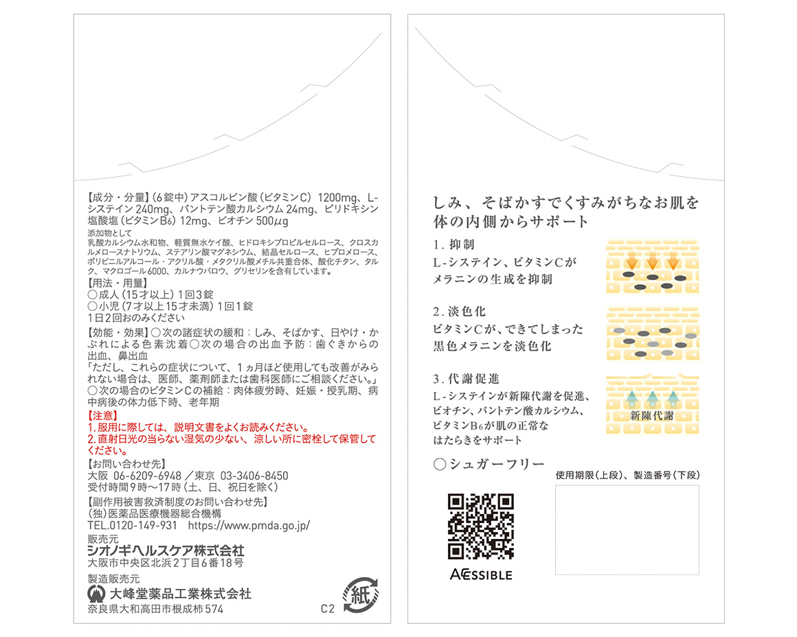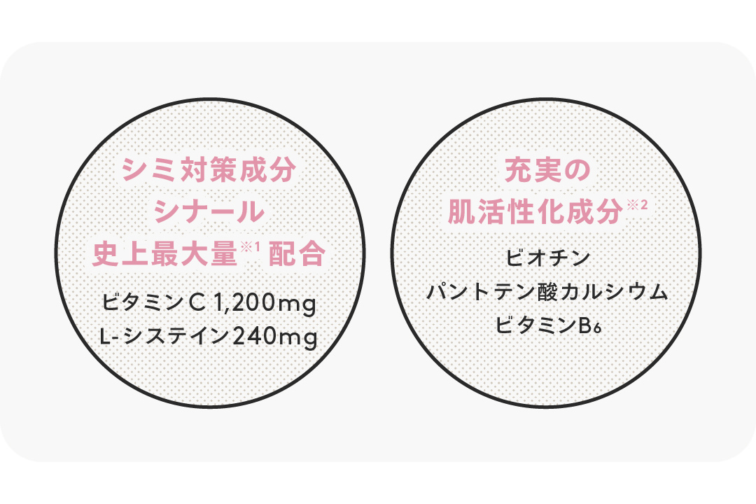 ※1:L-システインを配合したシナールシリーズの中でのビタミンC及びL-システインの6錠中の配合量