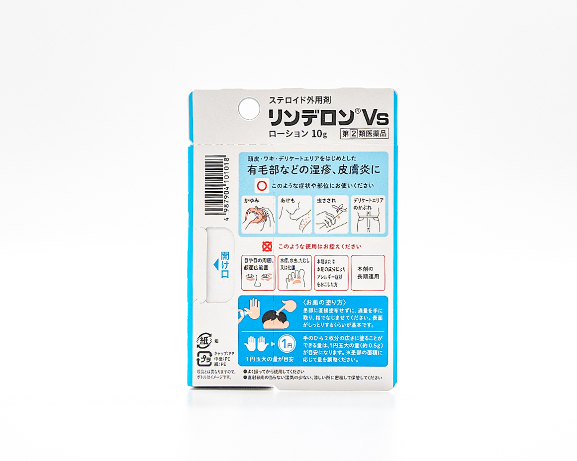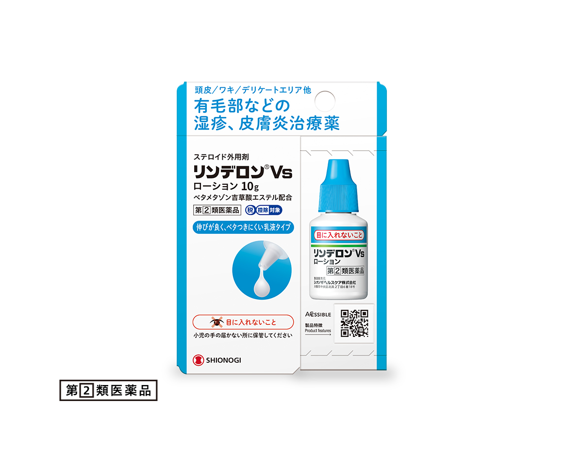 『リンデロンVsローション』はすぐれた抗炎症作用をもつ「ベタメタゾン吉草酸エステル」を配合した皮膚疾患治療薬です。しっしん、皮ふ炎、あせも、かぶれ、かゆみ、しもやけ、虫さされ、じんましんといった、日常の皮膚トラブルや皮膚炎などの症状に効果を発揮します。
