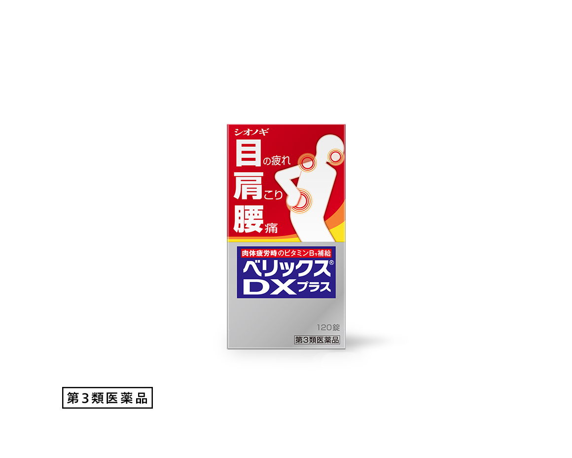更にビタミンB2、B6、B12、ニコチン酸アミドや天然型ビタミンEなどの様々な成分が協力し、肩こりや目の疲れ、腰痛などの諸症状の緩和や肉体疲労時のビタミンB1補給に効果を発揮します。