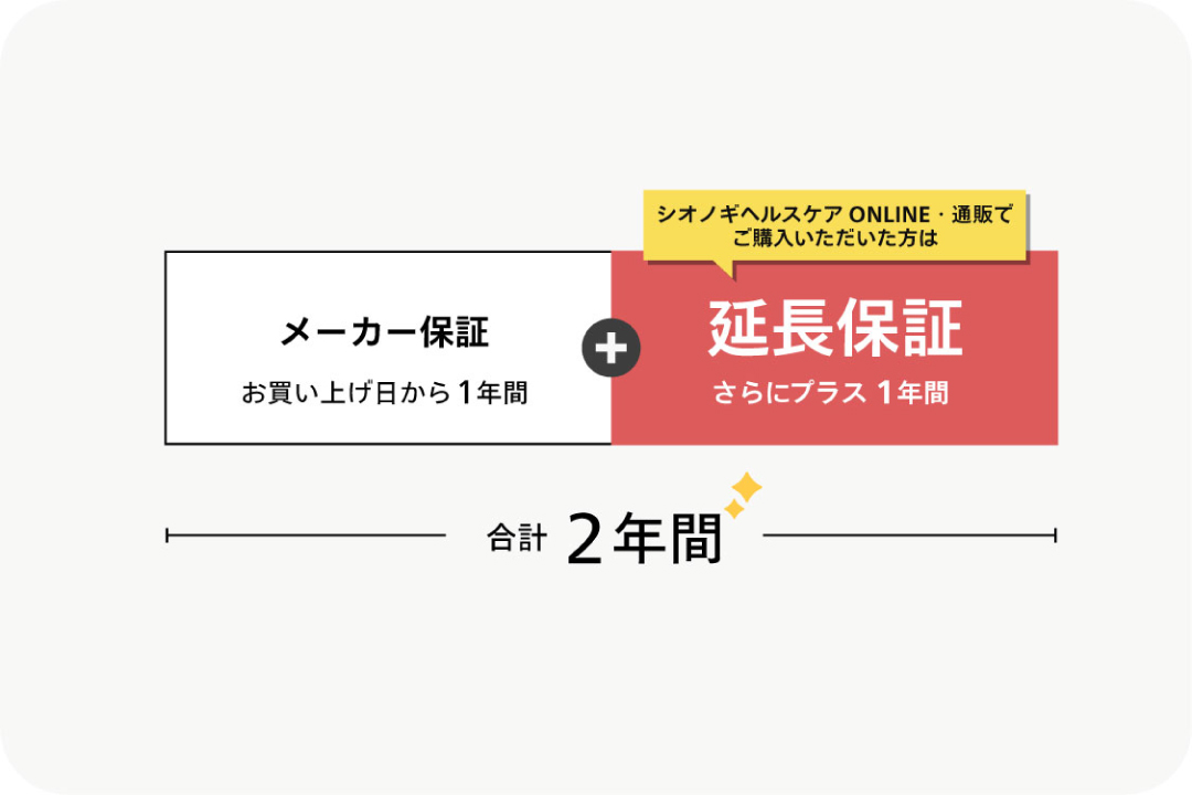 メーカー保証期間を通常1年のところ、さらに1年延長し2年間とするサービスです。