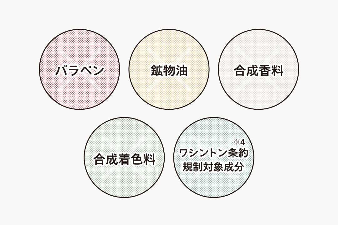 お休み中に集中ケアできる、ポイントパックです。 パラベン、合成香料、合成着色料、鉱物油、ワシントン条約※4抵触成分は不使用です。