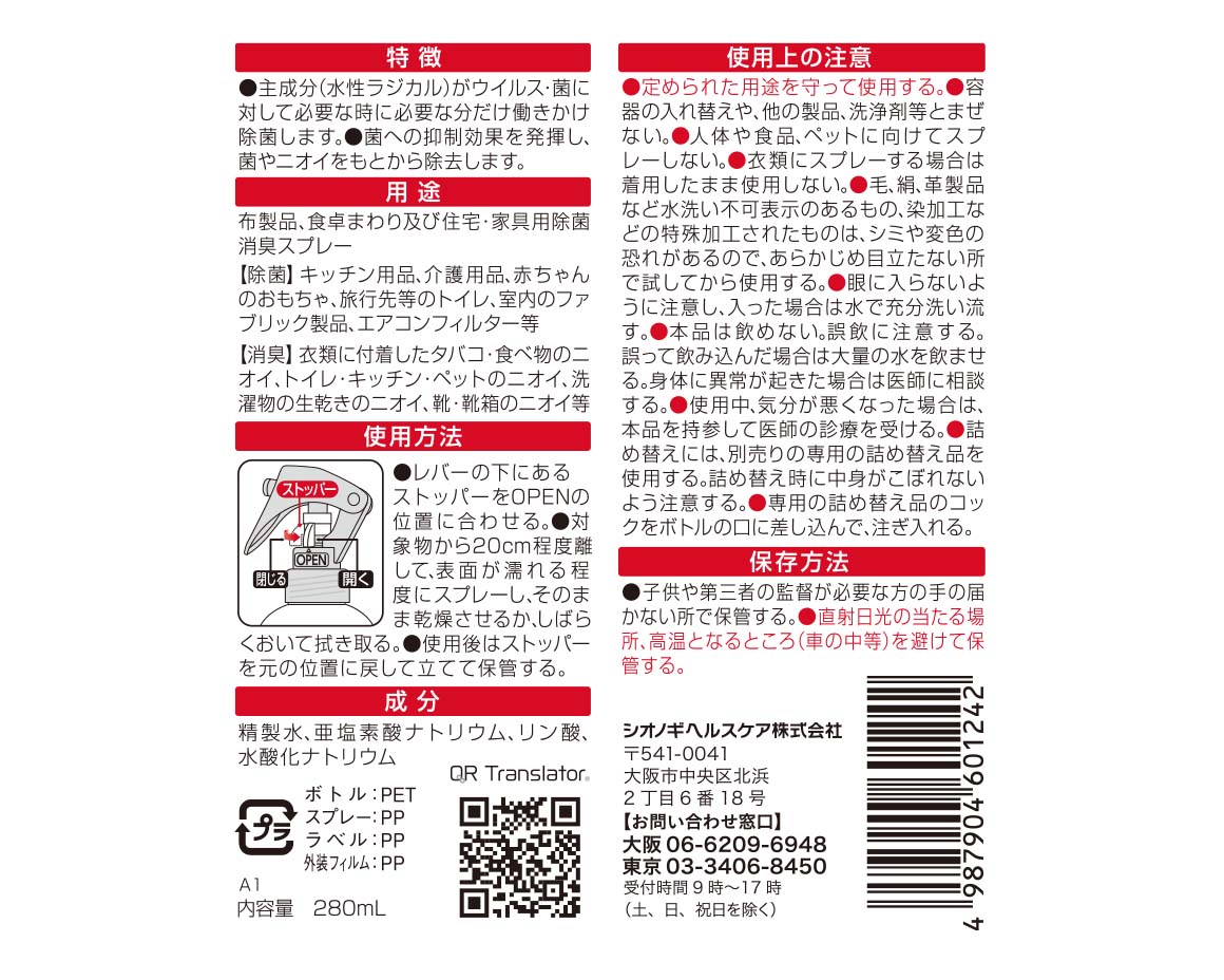 布製品、食卓まわり及び住宅・家具用除菌消臭スプレー