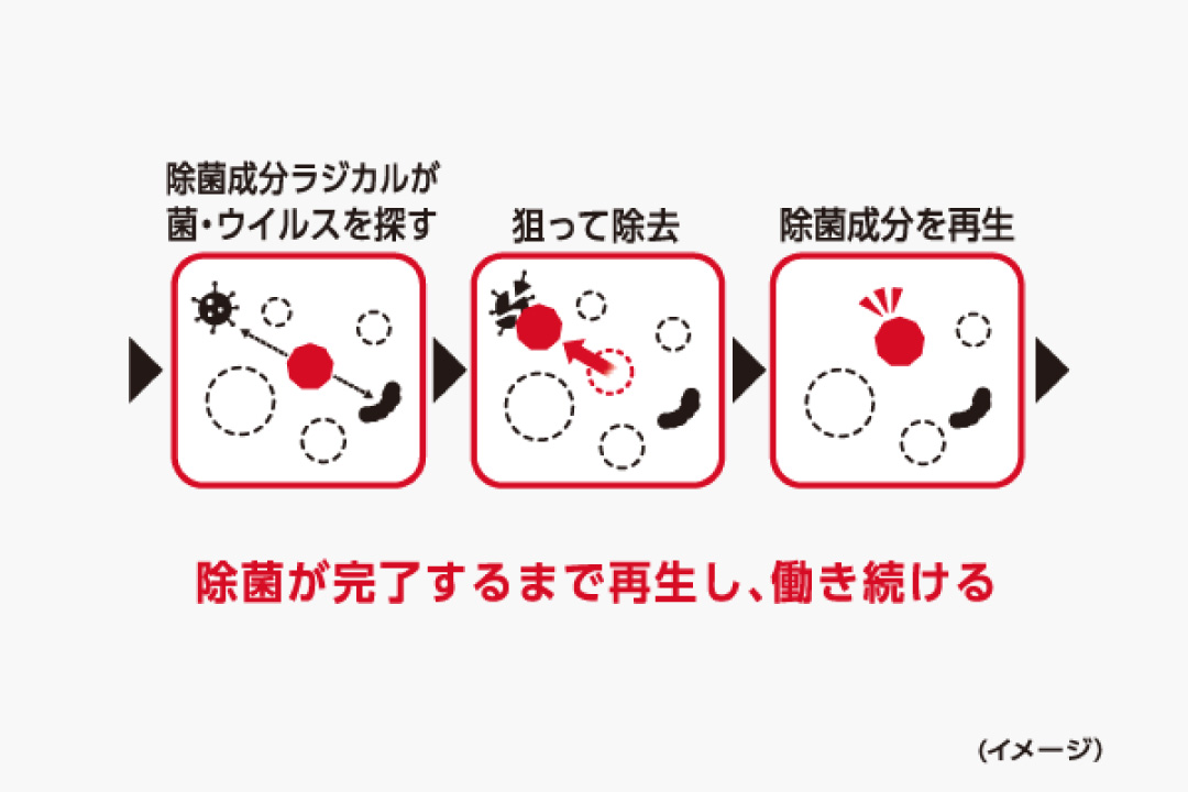 気になる菌やウイルスを狙って除去する「ターゲット除菌」のはたらきで、ご家庭内の気になる場所をしっかり除菌。毎日の感染対策をサポートします。