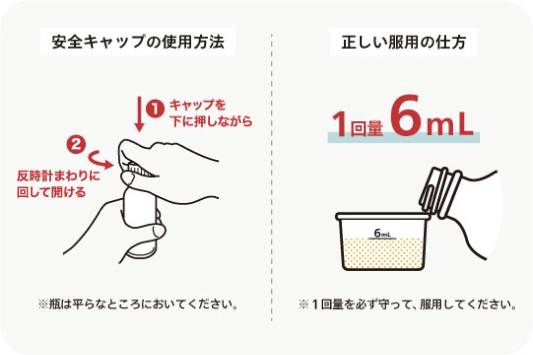 年齢 1回量 1日服用回数 成人(15才以上) 6mL 3回 15才未満 服用させないこと - ・定められた用法・用量を厳守してください。