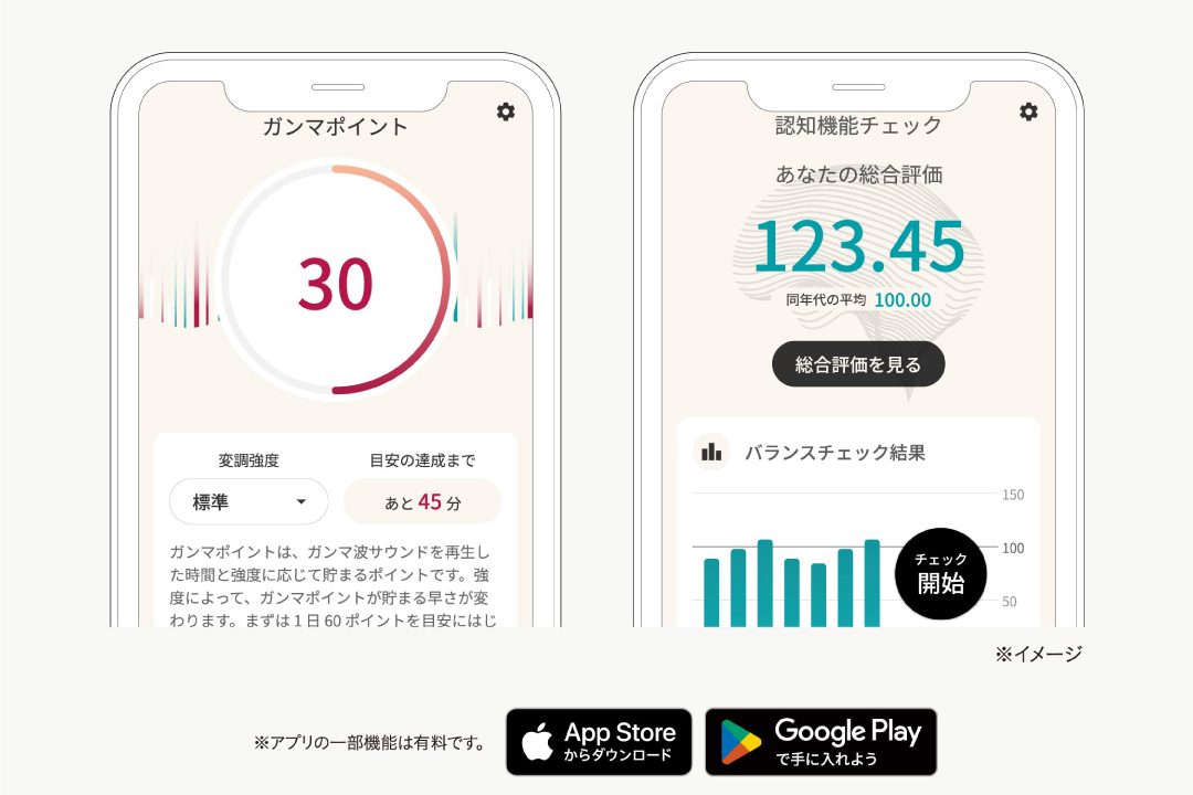 kikippaイヤホンの専用アプリでは、導入実績400社を超える脳体力®トレーナーCogEvo®監修の認知機能チェックツールで、あなたの脳の状態を確認できます。また最新の研究結果をもとに、機能のアップデートにも対応。そのほかくっきりボイスやガンマ波サウンドTMのモード変更、利用状況の確認も可能です。