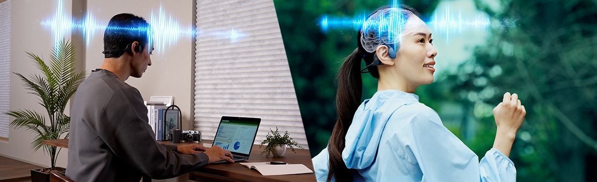 耳をふさがないため、音楽を聴きながら周囲の音も聞こえます。独自機構のフレックスイヤーサポートが装着の安定感と快適さを両立。日常のさまざまなシーンで自由に「ながら聴き」を楽しみながら、手軽に、かしこく脳を鍛えることができます。